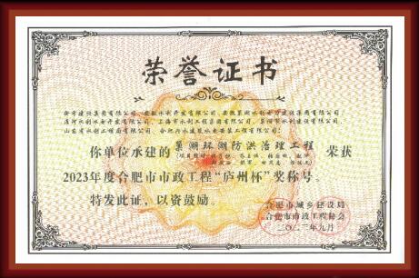 優(yōu)質(zhì)結(jié)構(gòu)工程獎(jiǎng)證書