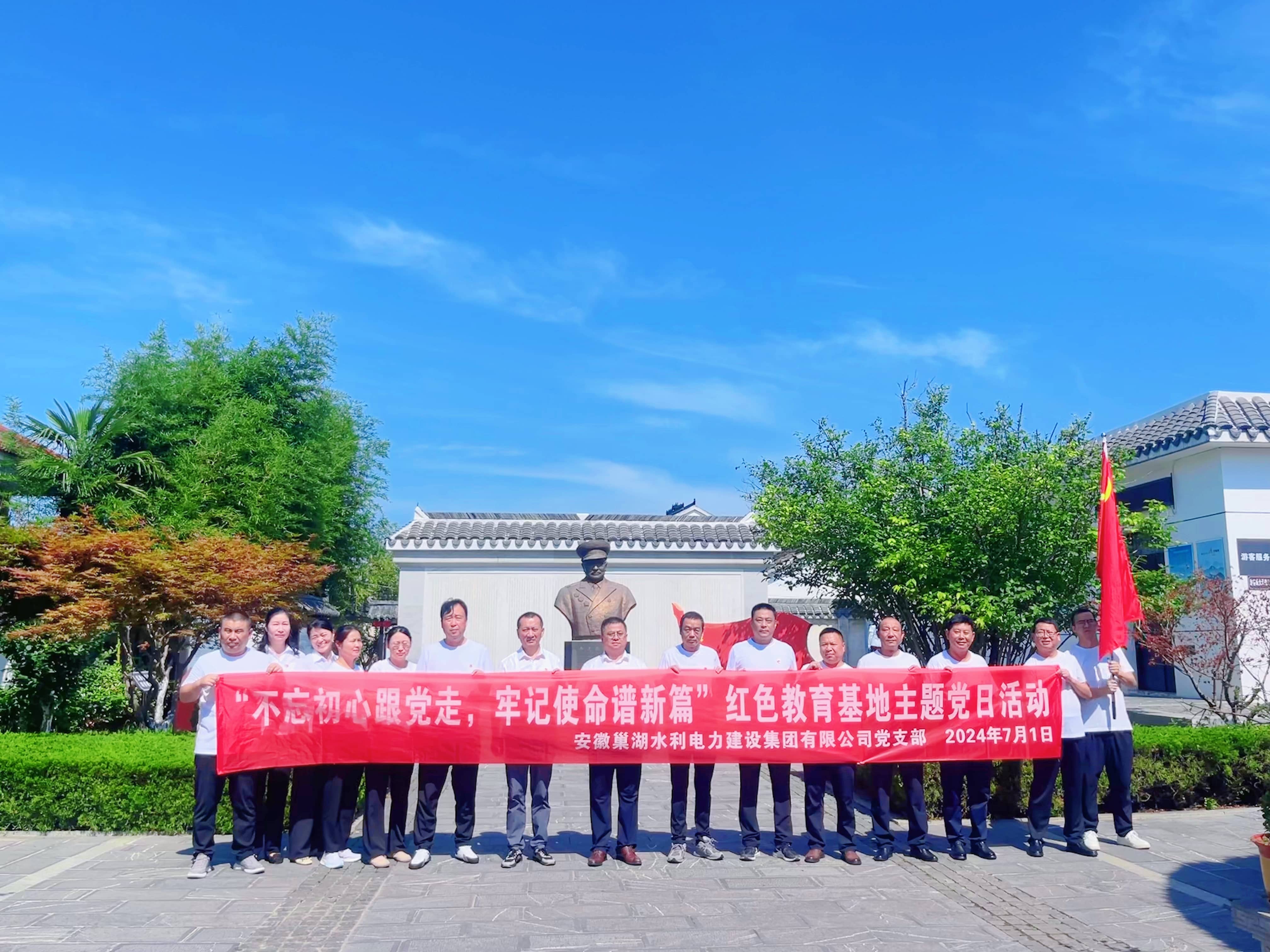 在七一建黨節(jié)來臨之際,為慶祝中國共產(chǎn)黨成立 103周年,深入貫徹黨的二十大精神,合肥市安徽巢湖水利電力建設(shè)集團(tuán)有限公司黨支部精心策劃組織了 “不忘初心跟黨走,牢記使命譜新篇” 主題黨日活動。公司黨員同志們懷揣著對革命先輩的崇敬,踏上了這場意義非凡的紅色之旅。